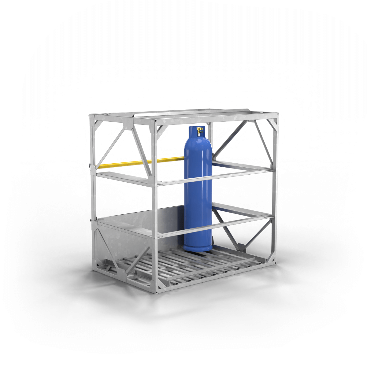 • Stable cylinder placement – a solid floor made of 40 × 20 mm steel profiles guarantees secure storage.